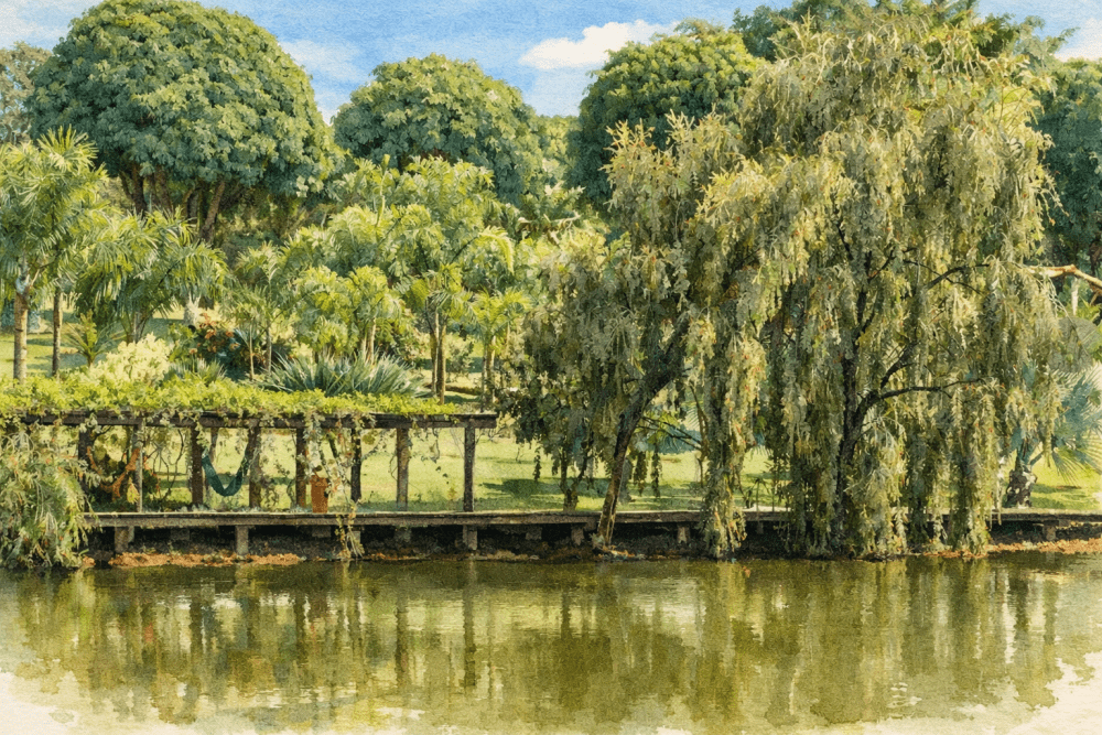 A cerimônia acontecerá ao ar livre, cercada pela natureza. Sugerimos calçados confortáveis para aproveitar cada momento com leveza.