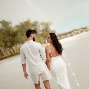 Criamos uma lista simbólica no site, em que os itens representam experiências da nossa lua de mel. As contribuições são convertidas em valor para nos ajudar a construir essa próxima memória juntos.